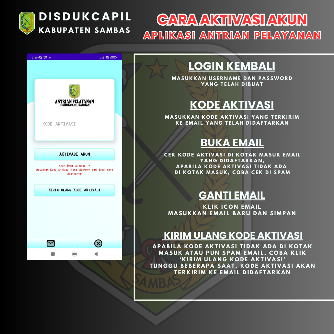 CARA AKTIVASI AKUN APLIKASI ANTRIAN PELAYANAN