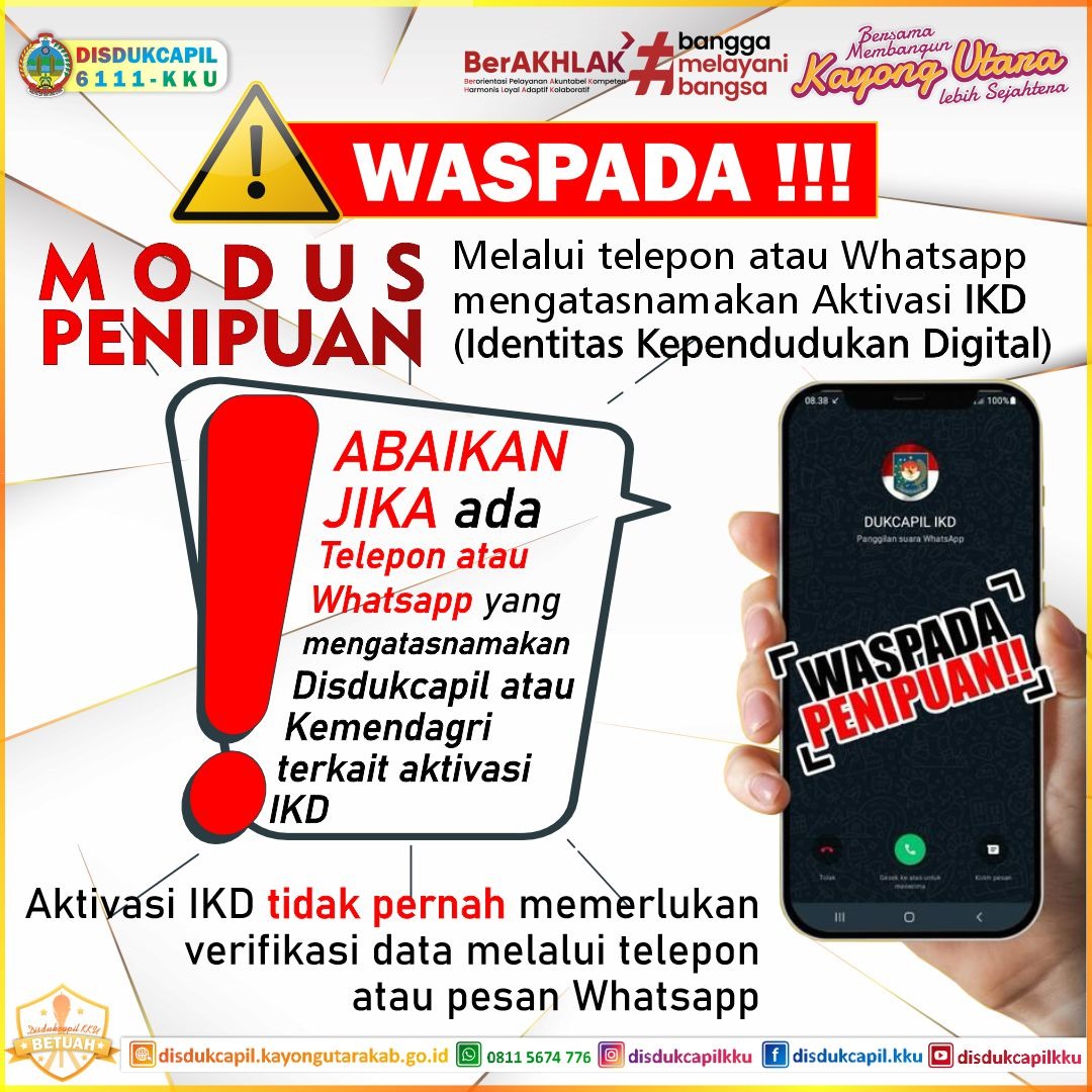 Waspada ! Modus Penipuan, Aktivasi IKD tidak pernah memerlukan verifikasi data melalui telepon ataupun pesan WhatsApp