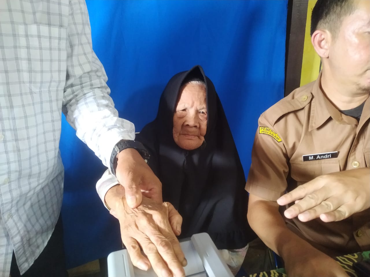 Disdukcapil Kabupaten Sambas melaksanakan pelayanan perekaman KTP el terhadap penduduk rentan (Lanjut Usia) di Kecamatan Pemangkat dan Desa Sebayan