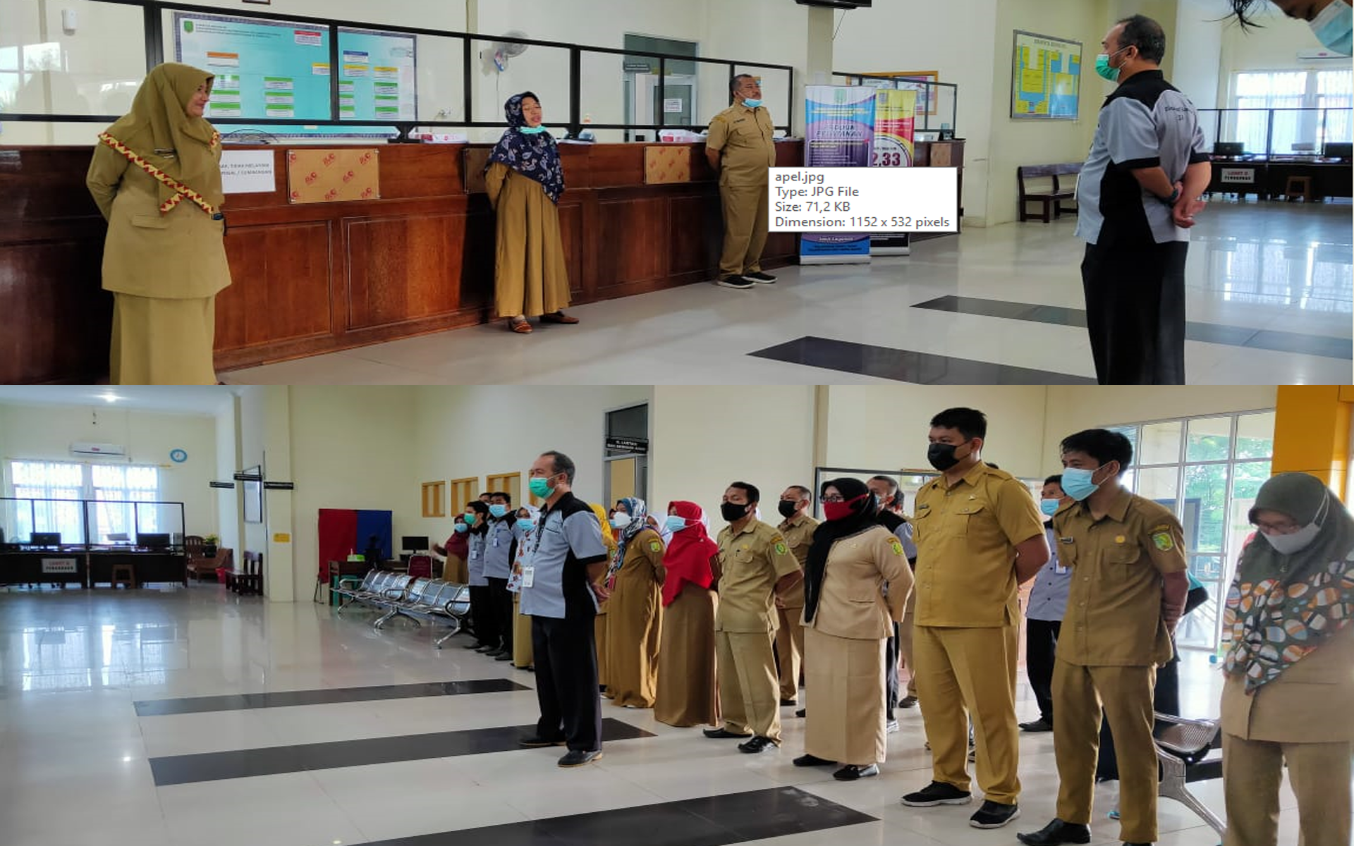 Sebelum memulai aktivitas rutin Dukcapil Sambas laksanakan apel di dalam dalam Kantor Dinas Kependudukan dan Pencatatan Sipil Kabupaten Sambas, apel ini dipimpin oleh Kepala Bidang Pelayanan Pencatatan Sipil, Ibu Agusmini Erawati, SE dan diikuti oleh hampir seluruh Pejabat Struktural, Staf ASN PNS dan Non PNS.