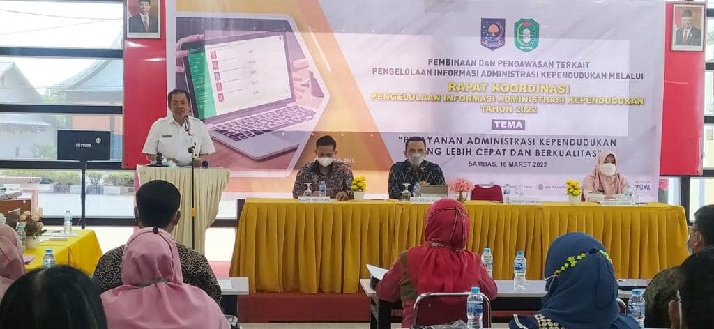 Sambas, Kegiatan Rakor Pengelolaan Informasi Administrasi Kependudukan Se Kalimantan Barat, yang dihadiri langsung oleh Direktur PIAK Ditjen Dukcapil Kemendagri, dan dibuka secara langsung oleh Sekretaris Daerah Kab Sambas, Rabu 16-03-2022, di hotel Pantura Sambas.