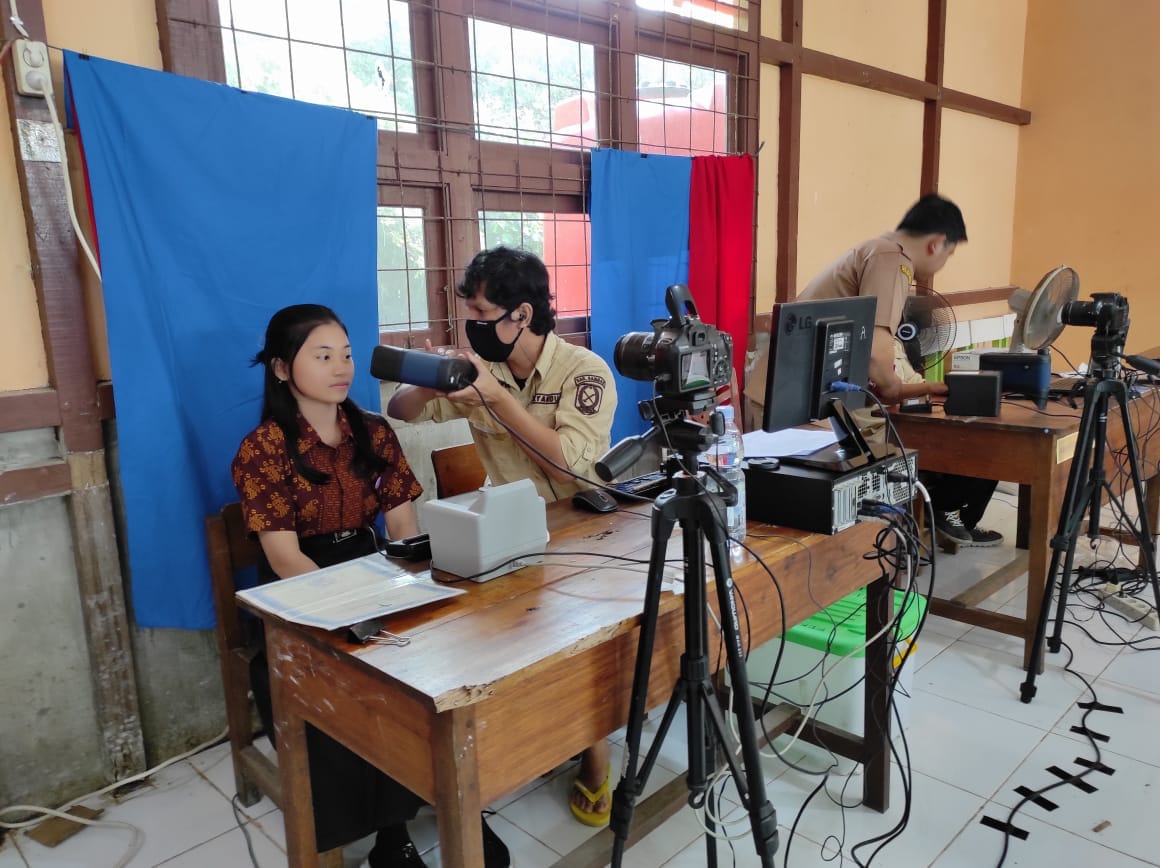 PERDANA di tahun 2024, tim Mobile Disdukcapil melakukan perekaman KTP El di SMK Negeri 2 Pemangkat, Selasa 19 Januari 2024