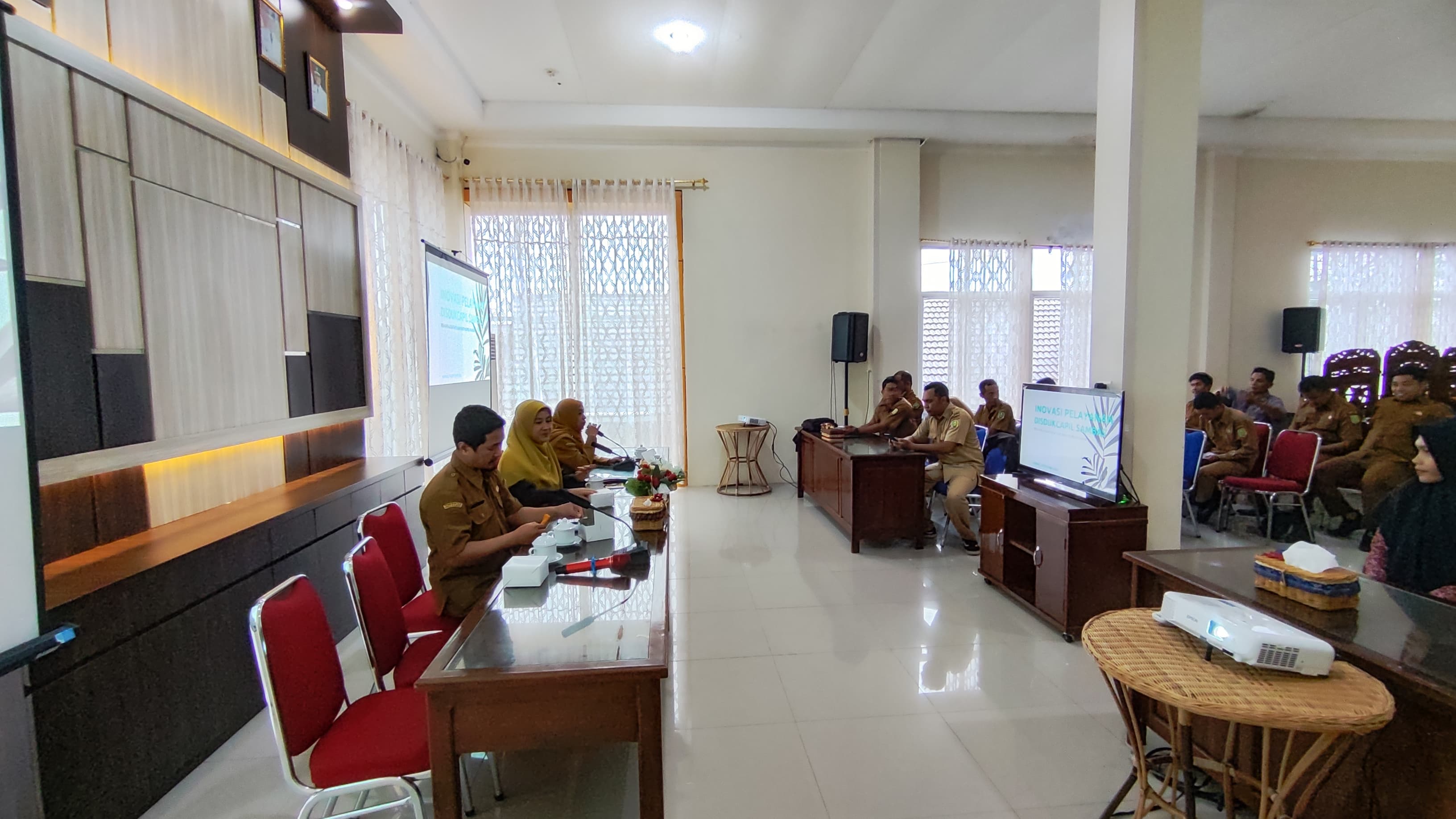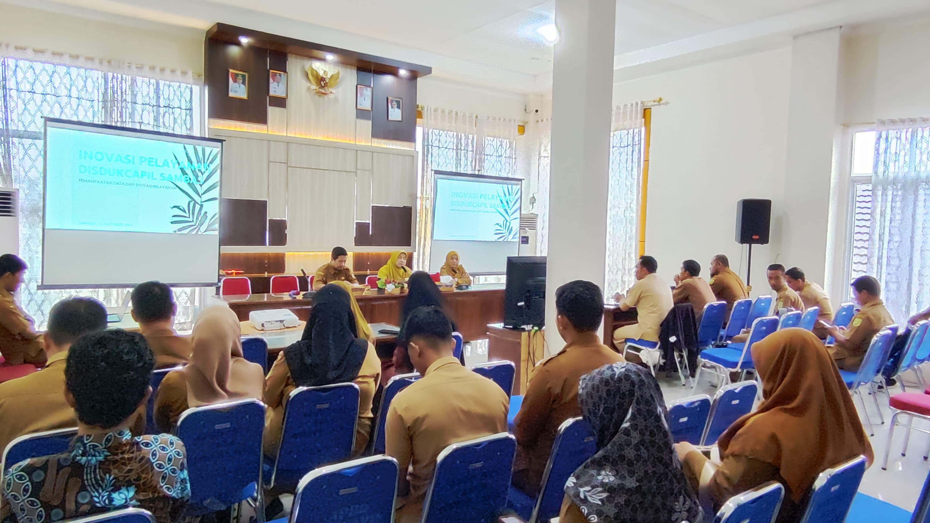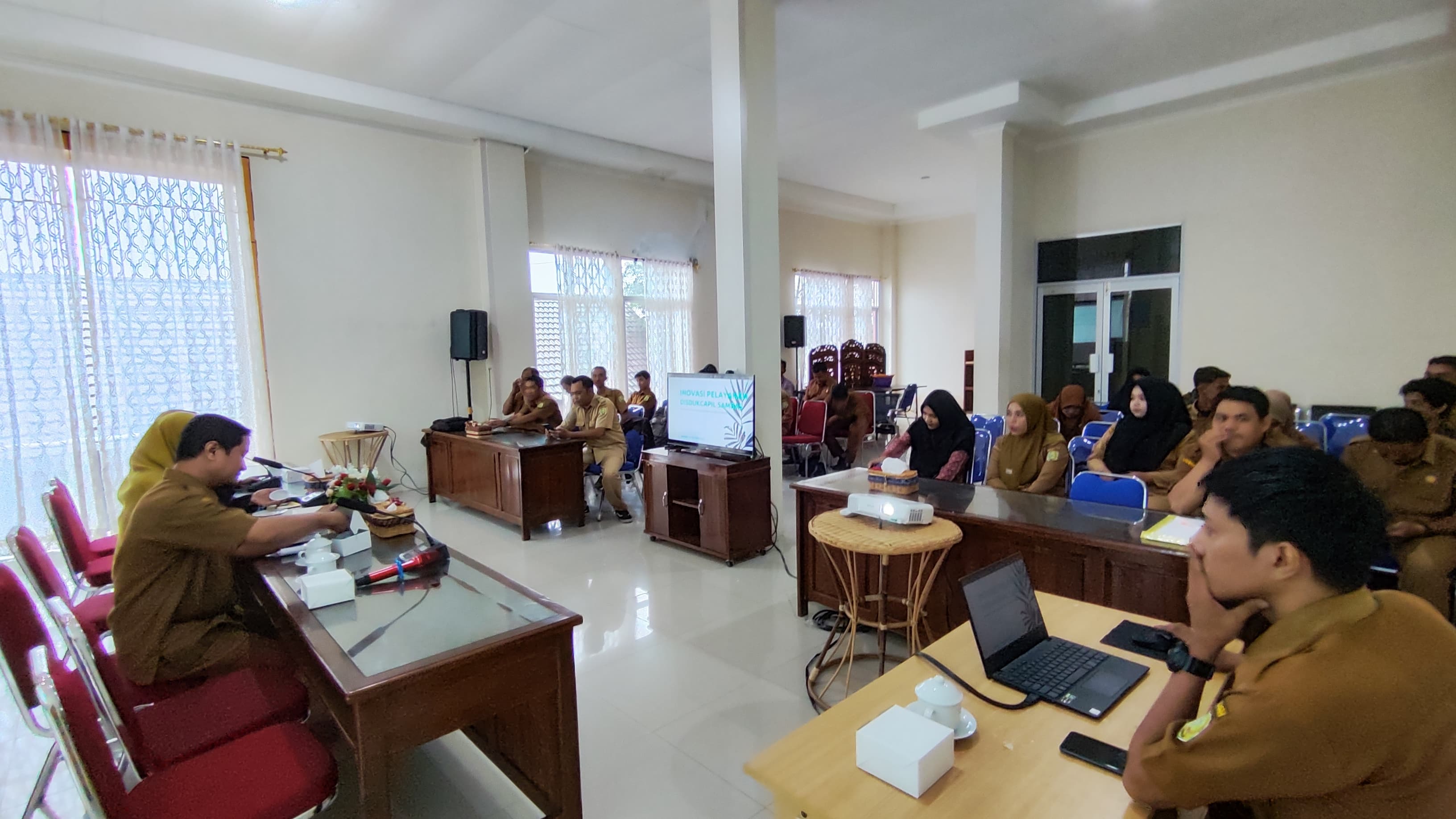 Senin, 14 Oktober 2024, Dinas Kependudukan dan Pencatatan Sipil Kabupaten Sambas mengadakan Pendampingan cara Penggunaan Aplikasi Antrian Pelayanan kepada operator Kecamatan dan Operator Desa, untuk di hari pertama diikuti oleh Operator dari Kecamatan Sambas, Paloh, Sajad dan Tangaran dan juga Operator dari Desa se-Kecamatan Sambas, Desa se-Kecamatan Paloh, Desa se-Kecamatan Sajad, dan Desa se-Kecamatan Tangaran. Kegiatan dibuka oleh Ibu Hj. WAHIDAH, SE., M.Si, Kepala Dinas Kependudukan dan Pencatatan Sipil Kabupaten Sambas. Kegiatan Pendampingan dihadiri juga oleh plt. Sekretaris Dinas Kependudukan dan Pencatatan Sipil Kabupaten Sambas, Muslim, ST dan Kepala Bidang Pemanfaatan Data dan Inovasi Pelayanan, Agusmini Erawati, SE dan juga Kepala Bidang Pelayanan Pendaftaran Penduduk, Yusirani, S.Kom,. MM