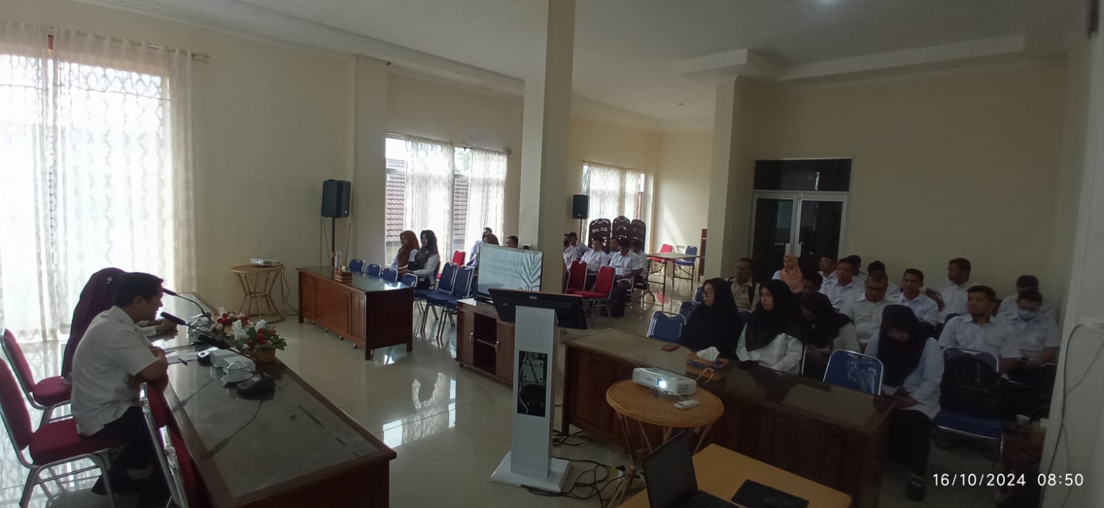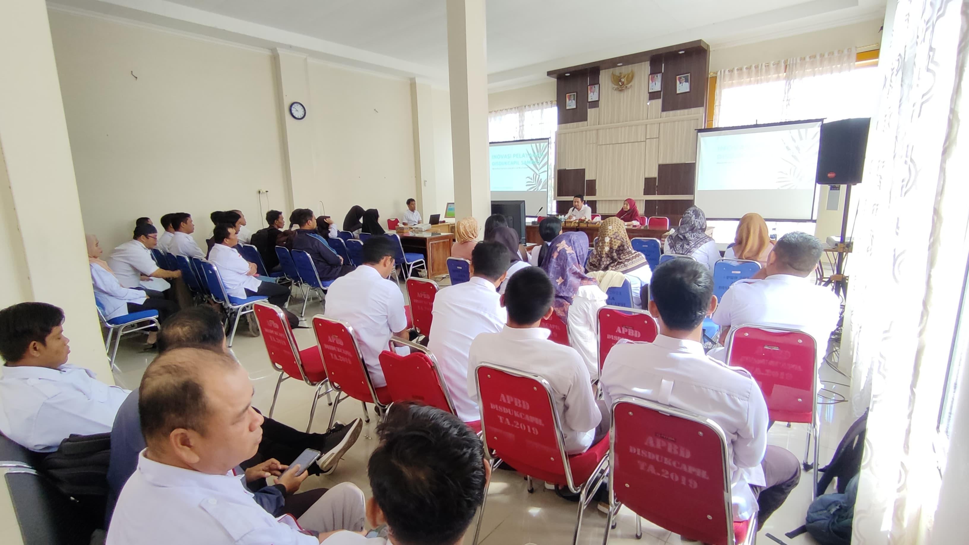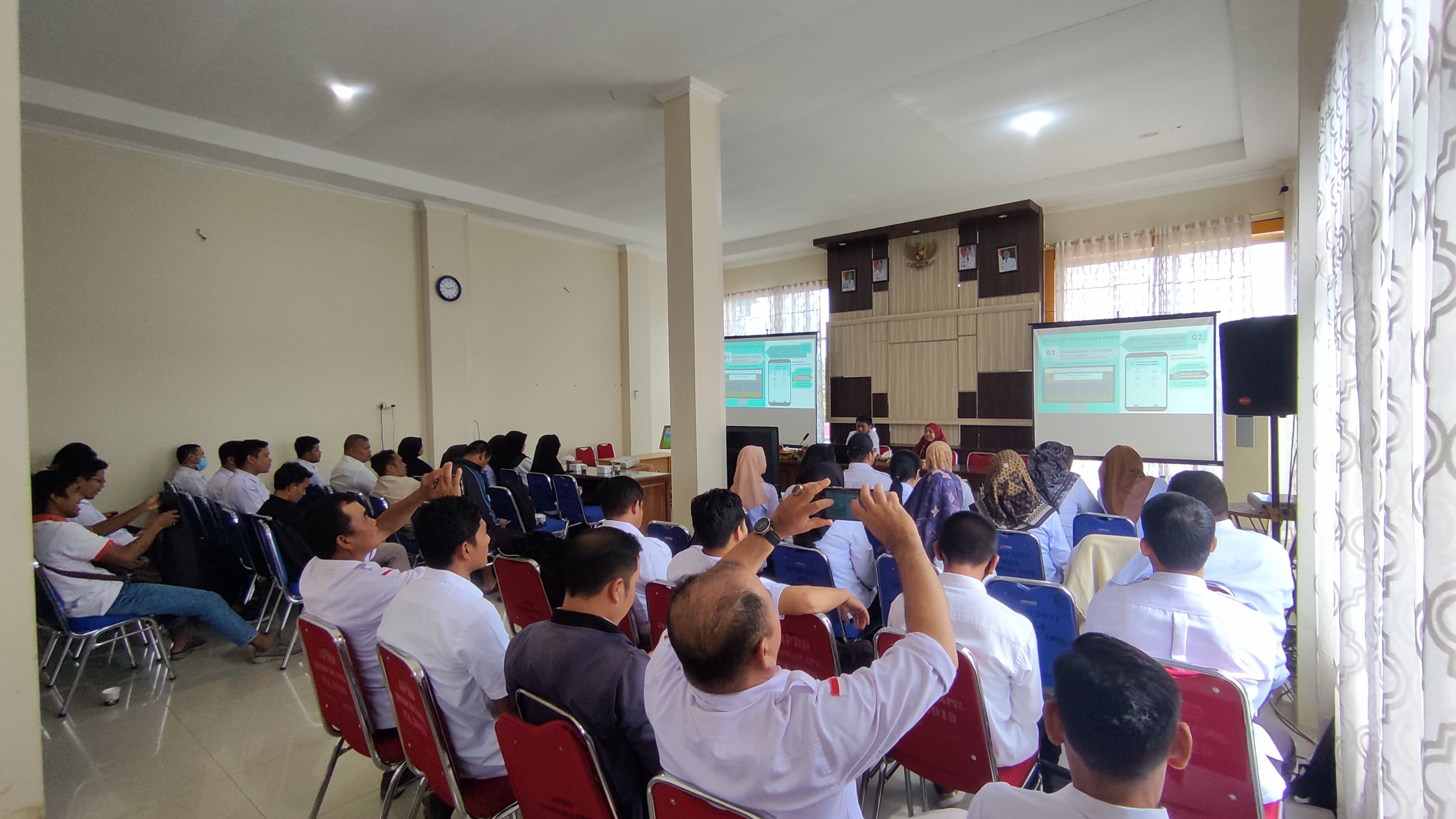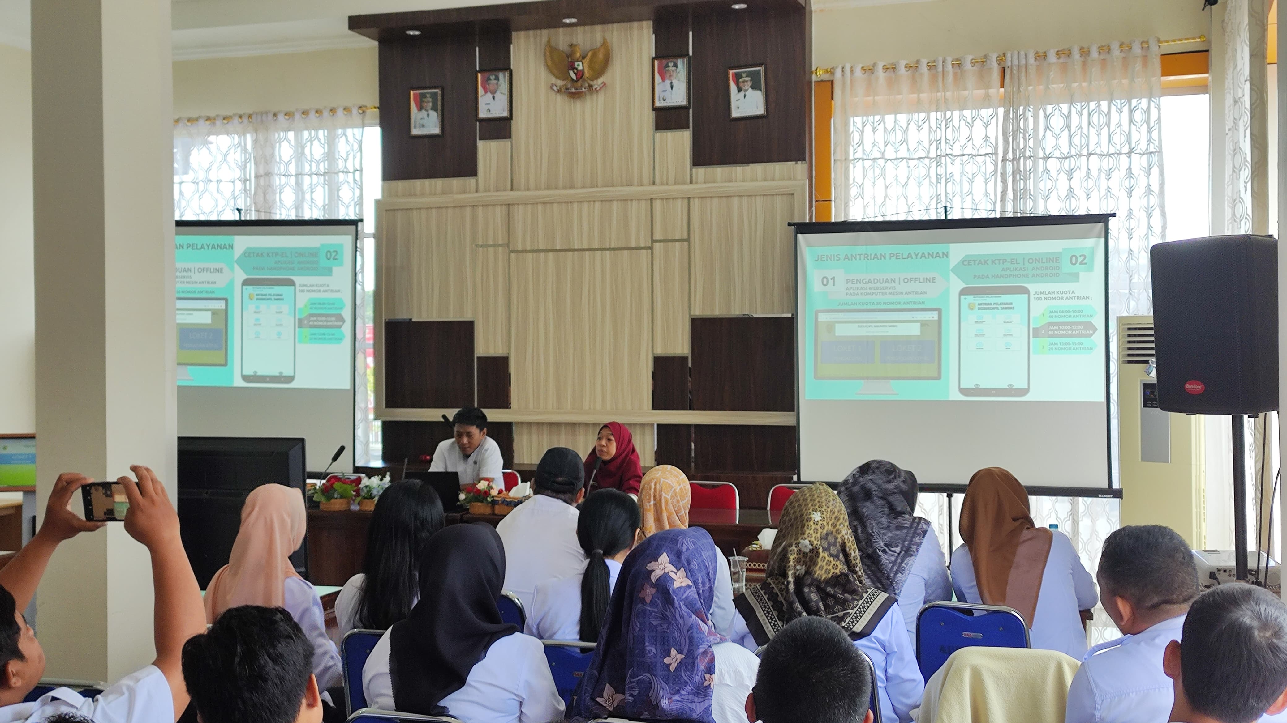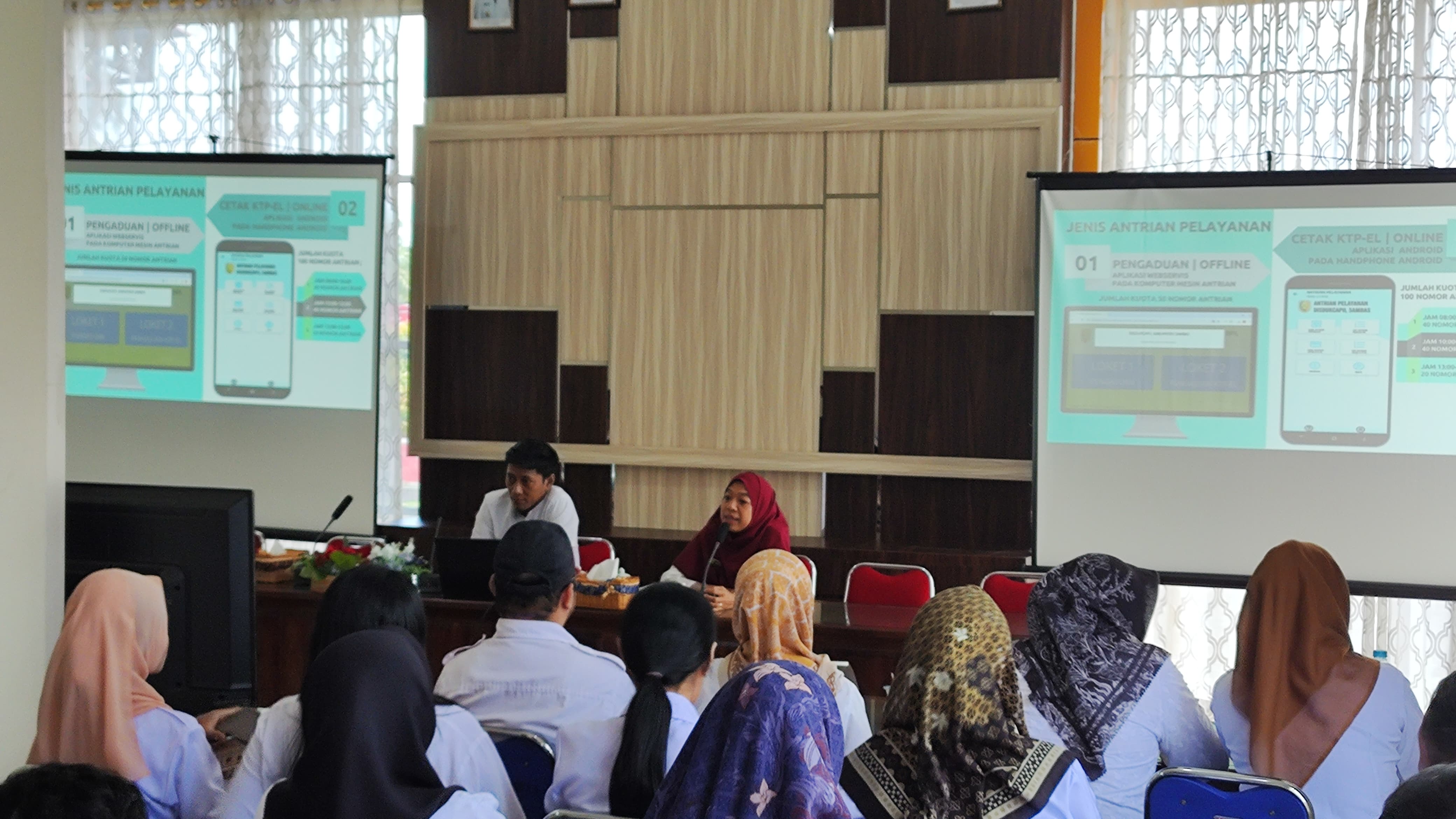Rabu, 16 Oktober 2024, Dinas Kependudukan dan Pencatatan Sipil Kabupaten Sambas mengadakan Pendampingan cara Penggunaan Aplikasi Antrian Pelayanan kepada operator Kecamatan dan Operator Desa, untuk di hari ke-tiga diikuti oleh Operator dari Kecamatan Tebas, Sejangkung dan Semparuk dan juga Operator dari Desa se-Kecamatan Tebas, Desa se-Kecamatan Sejangkung dan Desa se-Kecamatan Semparuk. Kegiatan dibuka oleh Bapak Muslim, ST, plt. Sekretaris Dinas Kependudukan dan Pencatatan Sipil Kabupaten Sambas. Kegiatan Pendampingan dihadiri juga Kepala Bidang Pemanfaatan Data dan Inovasi Pelayanan, Agusmini Erawati, SE