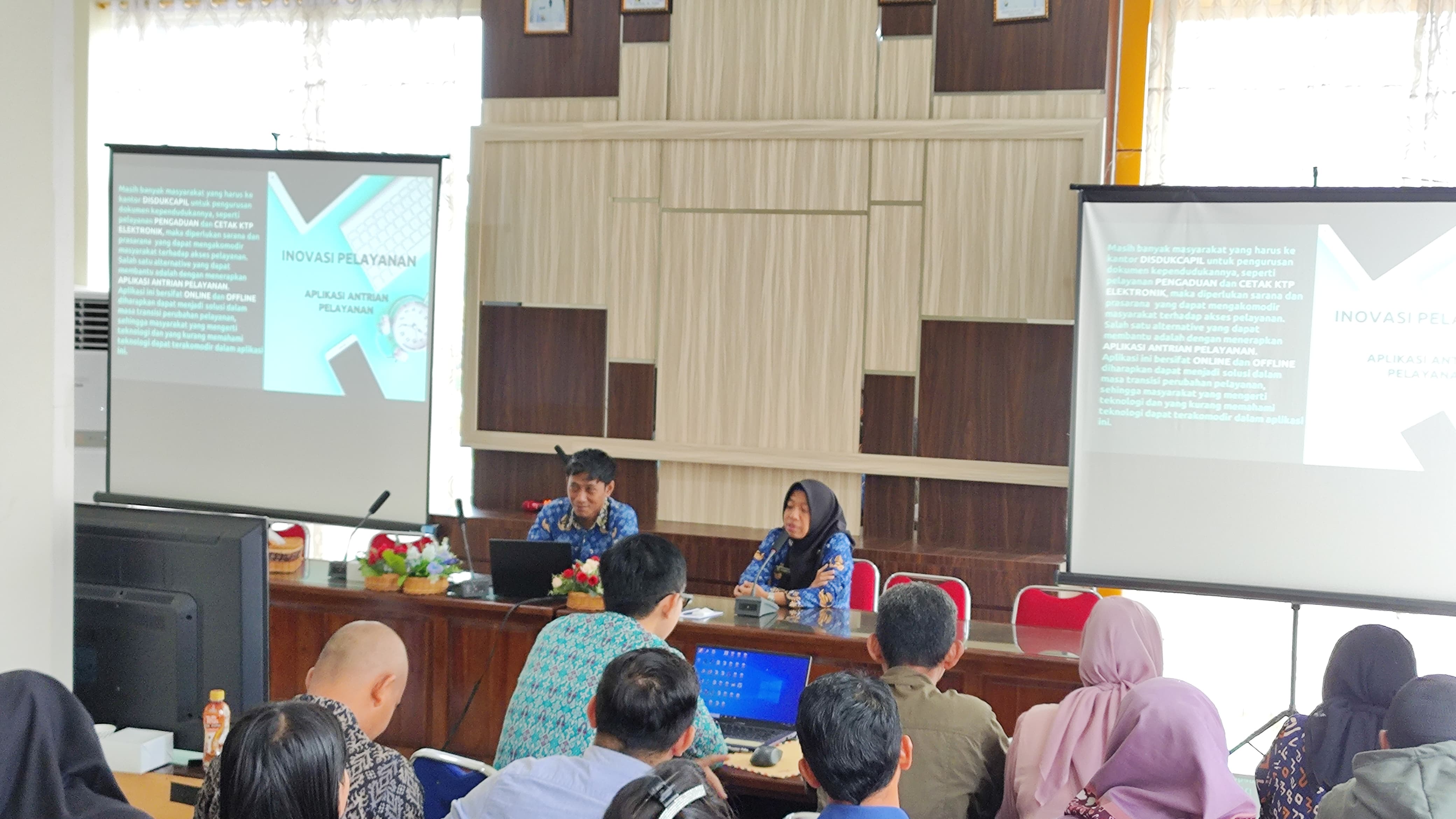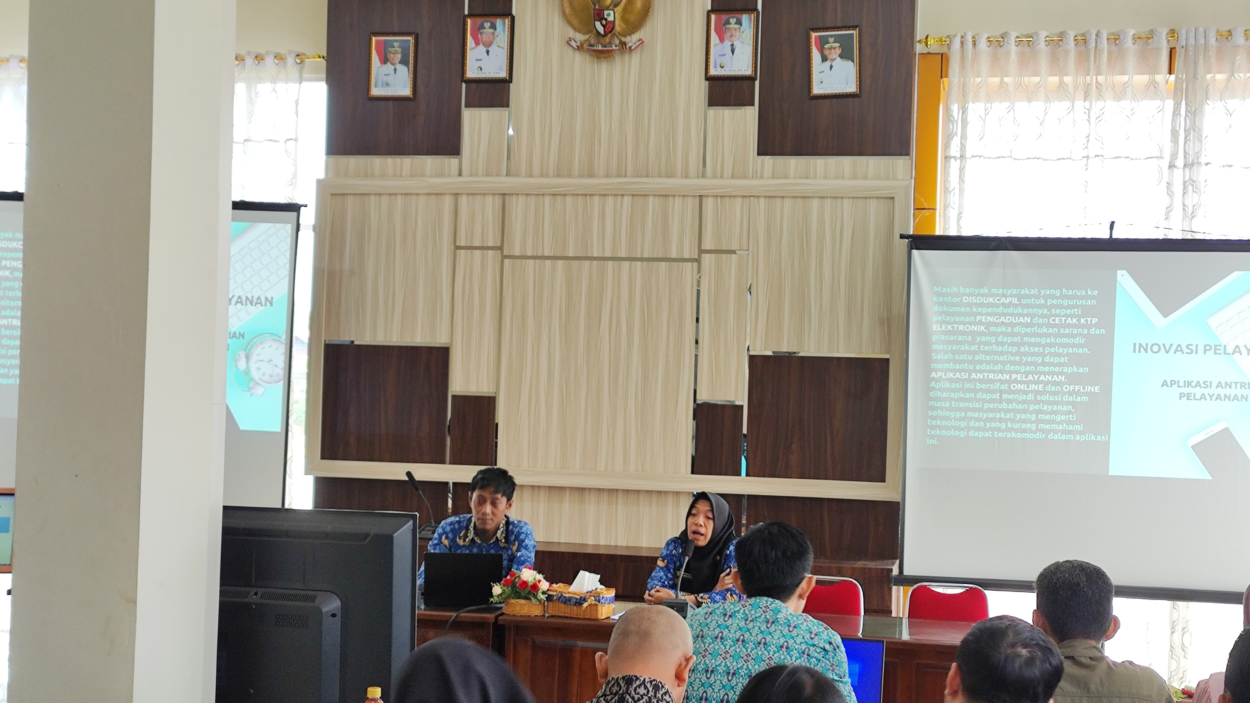 Kamis, 17 Oktober 2024, Dinas Kependudukan dan Pencatatan Sipil Kabupaten Sambas mengadakan Pendampingan cara Penggunaan Aplikasi Antrian Pelayanan kepada operator Kecamatan dan Operator Desa, untuk di hari ke-empat diikuti oleh Operator dari Kecamatan Selakau, Pemangkat, Subah dan Tekarang dan juga Operator dari Desa se-Kecamatan Selakau, Desa se-Kecamatan Pemangkat, Desa se-Kecamatan Subah dan Desa se-Kecamatan Tekarang. Kegiatan dibuka oleh Bapak Muslim, ST, plt. Sekretaris Dinas Kependudukan dan Pencatatan Sipil Kabupaten Sambas. Kegiatan Pendampingan dihadiri juga Kepala Bidang Pemanfaatan Data dan Inovasi Pelayanan, Agusmini Erawati, SE