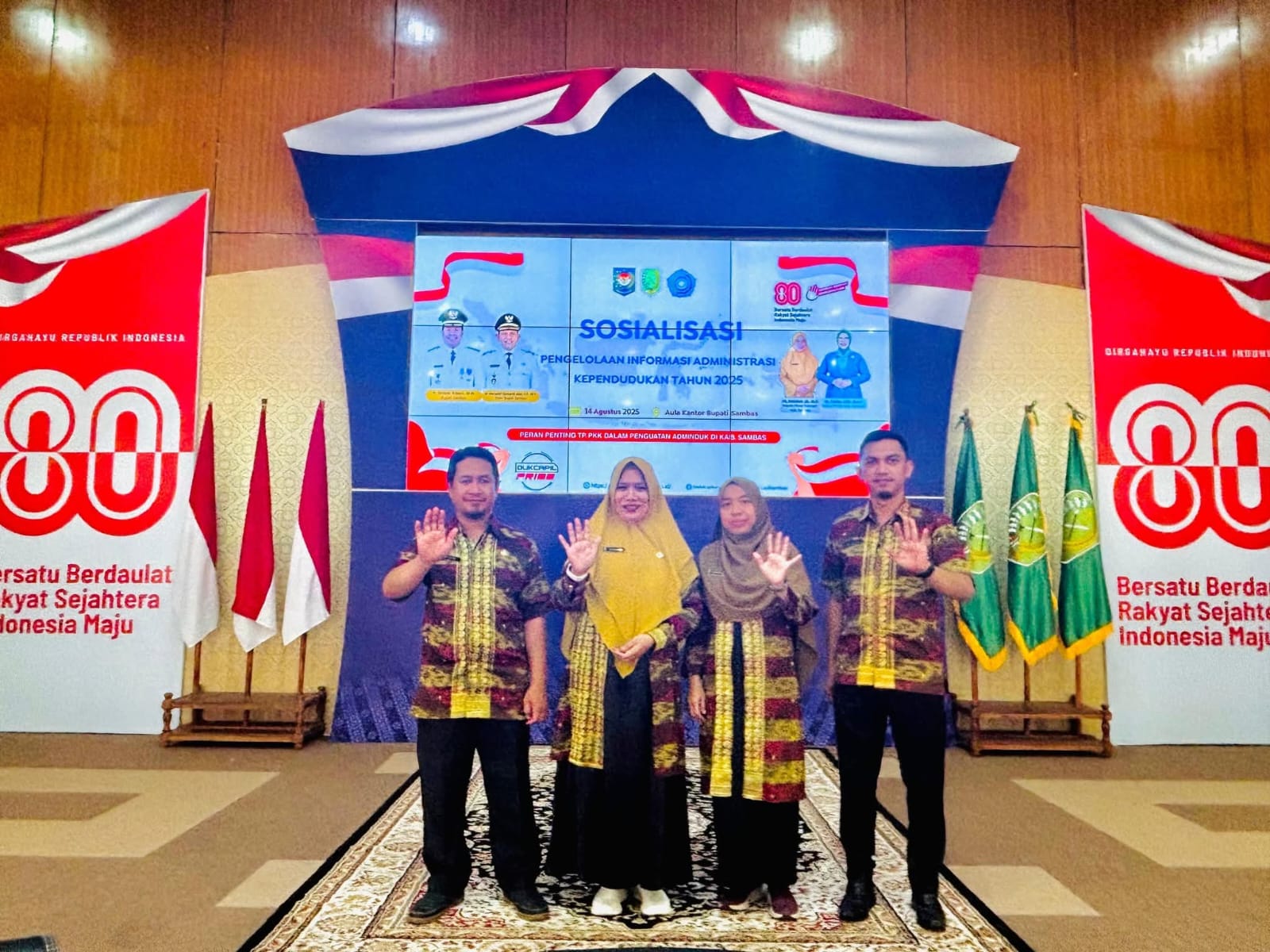 Sosialisasi terkait Pengelolaan Informasi Administrasi Kependudukan dengan Tema Peran Penting PKK dalam penguatan Adminstrasi Kependudukan. Laporan Kegiatan disampaikan oleh Kadis Dukcapil Ibu Wahidah, SE.,M.Si dan dibuka oleh Asisten Pemerintahan dan Kesejahteraan Rakyat Setda Sambas (Assisten I) Bapak Yudi, S.Sos,.M.Si, dan diikuti dengan pengarahan ketua tim penggerak PKK Kab Sambas Ibu Yunisa, S.Pd,.M.A.P, serta dihadiri oleh Staf Ahli Bupati Bidang Pemerintahan, Hukum dan Politik, Ibu Tatik Muryati, SH,. Peserta kegiatan terdiri dari OPD, Kasi Pem Kecamatan, unsur perguruan tinggi ( UNISSAS dan Poltesa), PKK kab dan Kecamatan, operator Adminduk Desa, Tokoh perempuan, media dan unsur Disdukcapil Sambas,. Dalam sambutannya Asisten menyampaikan pentingnya kaloborasi dan sinergi antara lembaga mulai dari RT, desa sampai organisasi masyarakat untuk menguatkan Adminduk di Kab Sambas,. Kegiatan dilaksanakan pada hari Kamis, 14 Agustus 2025, kegiatan juga dirangkai FGD terkait Adminduk