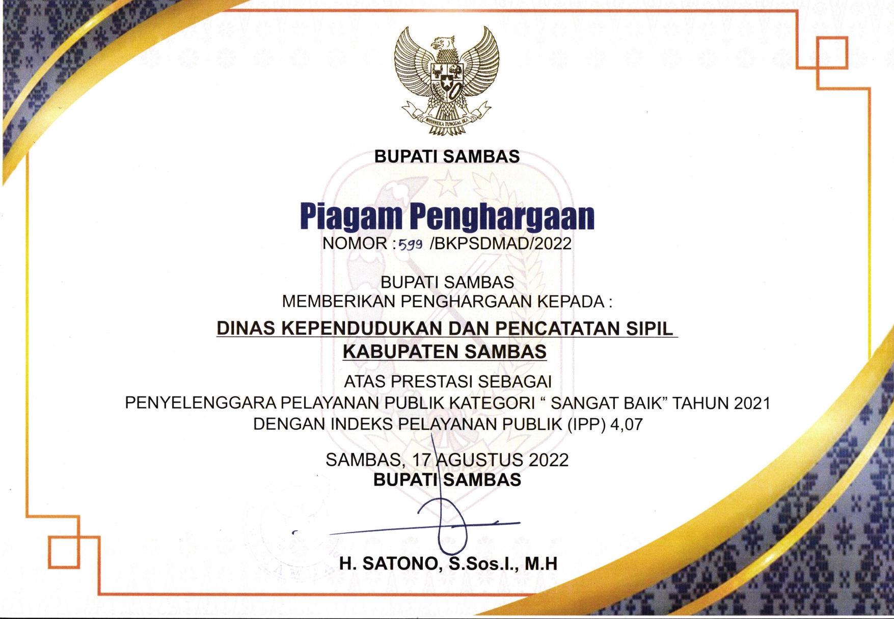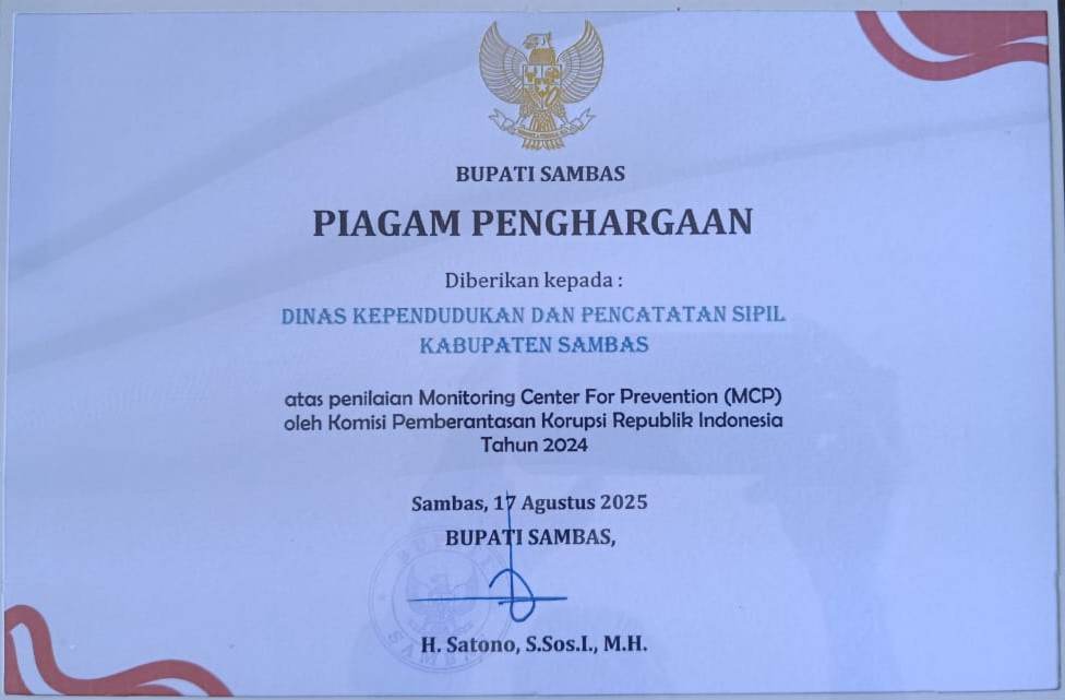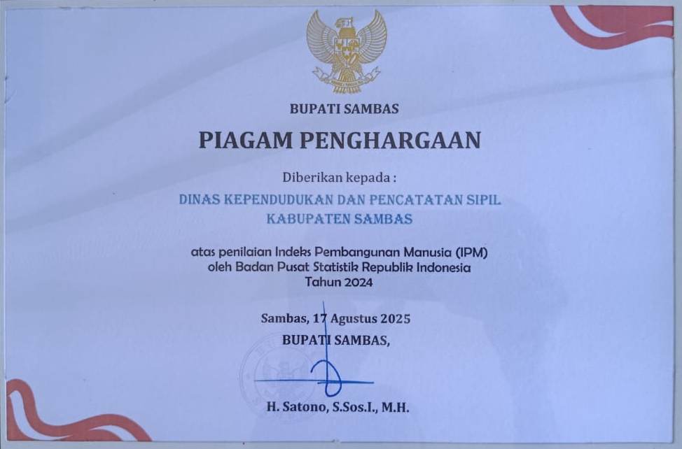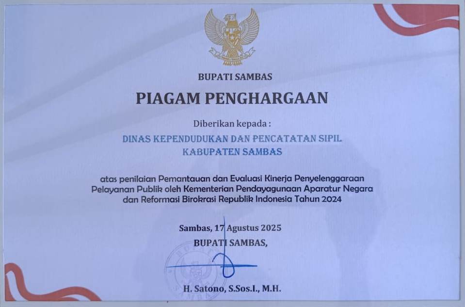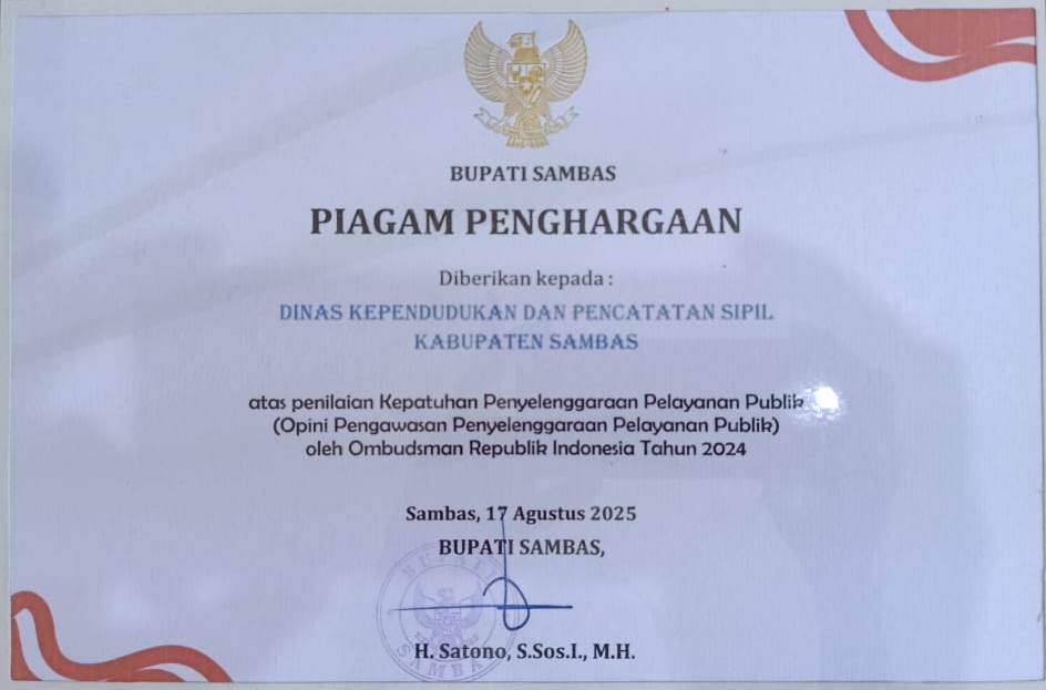 PENGHARGAAN DISDUKCAPIL SAMBAS